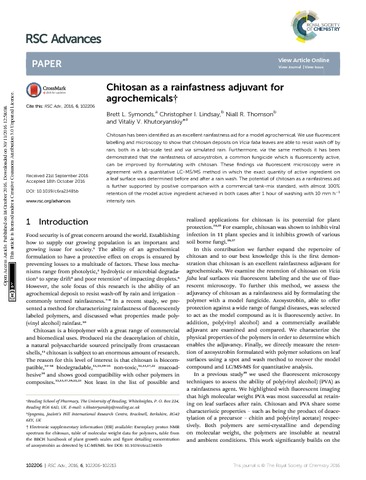 Chitosan as a rainfastness adjuvant for agrochemicals.