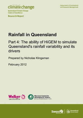 Klingaman, N. P. orcid id iconORCID: https://orcid.org/0000-0002-2927-9303, (2012) Rainfall in Queensland: Part 4: the ability of HiGEM to simulate Queensland's rainfall variability and its drivers. Technical Report. Queensland Government, Brisbane, Australia. pp39. ISBN 9780975082744