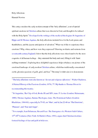 Newton, H. (2017) Holy affections. In: Broomhall, S. (ed.) Early modern emotions: an introduction. Routledge, London, pp. 67-70. ISBN 9781138925748