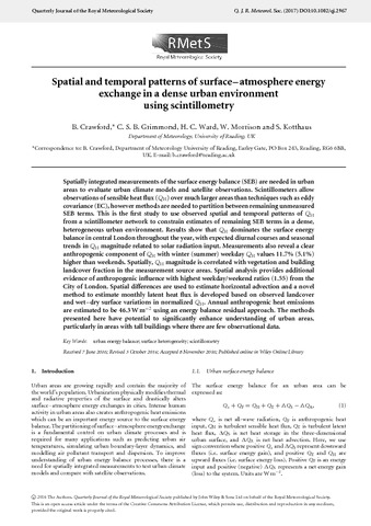 Spatial and temporal patterns of surface-atmosphere energy exchange in a dense urban environment using scintillometry.