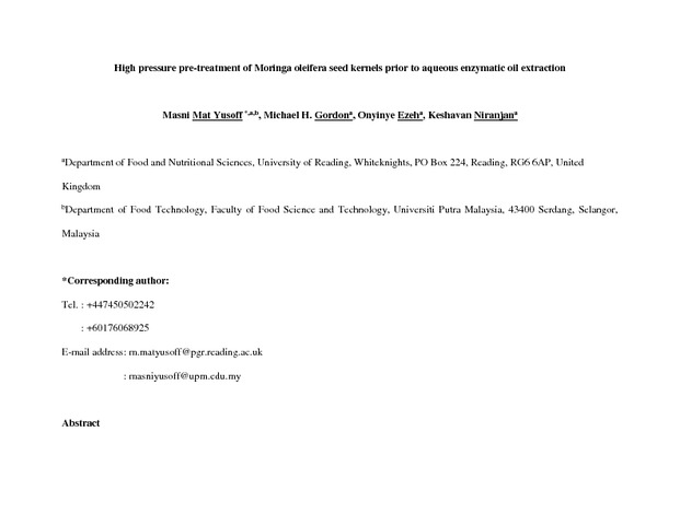 Mat Yusoff, M. B., Gordon, M. H., Ezeh, O. and Niranjan, K. ORCID: https://orcid.org/0000-0002-6525-1543