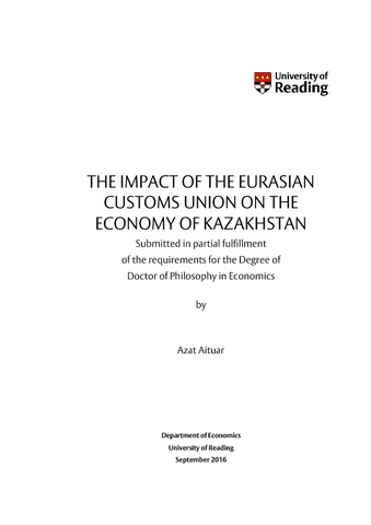 Aituar, A. (2016) The impact of the Eurasian customs union on the economy of Kazakhstan. PhD thesis, University of Reading.