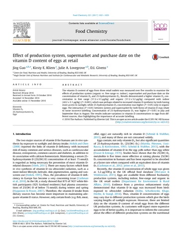 Effect of production system, supermarket and purchase date on the vitamin D content of eggs at retail.