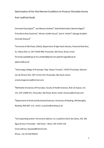 Optimisation of the post-harvest conditions to produce chocolate aroma from jackfruit seeds.