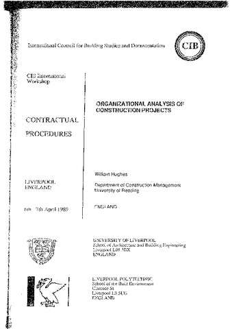 In: Contractual procedures for building, 6-7 April 1989, Liverpool, pp. 263-272.