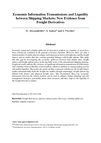 Economic information transmissions and liquidity between shipping markets: new evidence from freight derivatives