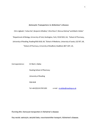 Astrocytic transporters in Alzheimer's disease.