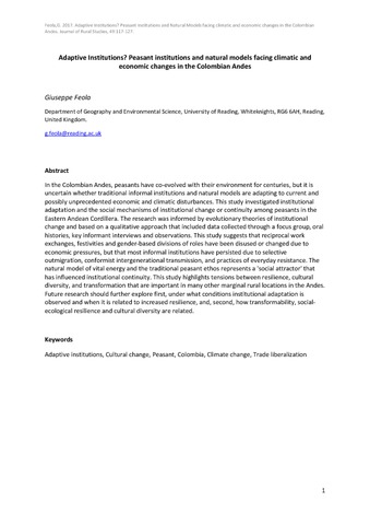 In the Colombian Andes, peasants have co-evolved with their environment for centuries, but it is uncertain whether traditional informal institutions and natural models are adapting to current and possibly unprecedented economic and climatic disturbances. This study investigated institutional adaptation and the social mechanisms of institutional change or continuity among peasants in the Eastern Andean Cordillera. The research was informed by evolutionary theories of institutional change and based on a qualitative approach that included data collected through a focus group, oral histories, key informant interviews and observations. This study suggests that reciprocal work exchanges, festivities and gender-based divisions of roles have been disused or changed due to economic pressures, but that most informal institutions have persisted due to selective outmigration, conformist intergenerational transmission, and practices of everyday resistance. The natural model of vital energy and the traditional peasant ethos represents a 'social attractor' that has influenced institutional continuity. This study highlights tensions between resilience, cultural diversity, and transformation that are important in many other marginal rural locations in the Andes. Future research should further explore first, under what conditions institutional adaptation is observed and when it is related to increased resilience, and, second, how transformability, social-ecological resilience and cultural diversity are related.