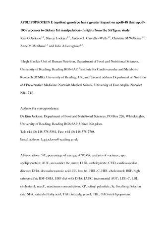 Jackson, K. G. ORCID: https://orcid.org/0000-0002-0070-3203, Lockyer, S., Carvalho-Wells, A. L., Williams, C. M., Minihane, A. M. and Lovegrove, J. A.