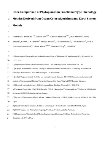 Inter-comparison of phytoplankton functional type phenology metrics derived from ocean color algorithms and earth system models.