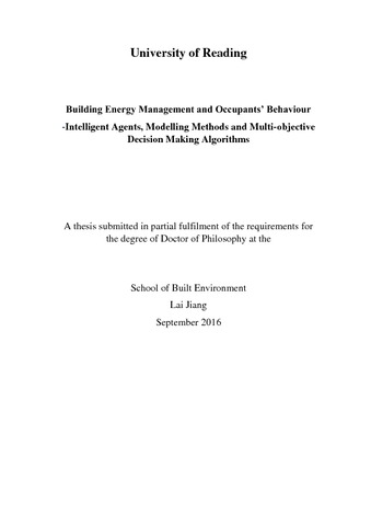 Jiang, L. (2017) Building energy management and occupants’ behaviour-intelligent agents, modelling methods and multi-objective decision making algorithms. PhD thesis, University of Reading.
