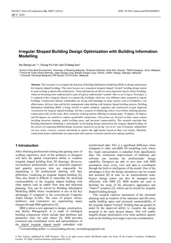 This research is to recognise the function of Building Information Modelling (BIM) in design optimization for irregular shaped buildings. The study focuses on a conceptual irregular shaped “twisted” building design similar to some existing sculpture-like architectures. Form and function are the two most important aspects of new buildings, which are becoming more sophisticated as parts of equally sophisticated “systems” that we are living in. Nowadays, it is common to have irregular shaped or sculpture-like buildings which are very different when compared to regular buildings. Construction industry stakeholders are facing stiff challenges in many aspects such as buildability, cost effectiveness, delivery time and facility management when dealing with irregular shaped building projects. Building Information Modelling (BIM) is being utilized to enable architects, engineers and constructors to gain improved visualization for irregular shaped buildings; this has a purpose of identifying critical issues before initiating physical construction work. In this study, three variations of design options differing in rotating angle: 30 degrees, 60 degrees and 90 degrees are created to conduct quantifiable comparisons. Discussions are focused on three major aspects including structural planning, usable building space, and structural constructability. This research concludes that Building Information Modelling is instrumental in facilitating design optimization for irregular shaped building. In the process of comparing different design variations, instead of just giving “yes or no” type of response, stakeholders can now easily visualize, evaluate and decide to achieve the right balance based on their own criteria. Therefore, construction project stakeholders are empowered with superior evaluation and decision making capability.