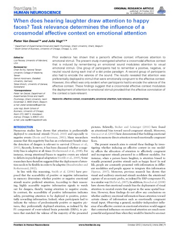 When does hearing laughter draw attention to happy faces?Task relevance determines the influence of a crossmodal affective context on emotional attention.