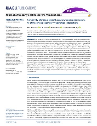 Hollaway, M. J., Arnold, S. R., Collins, W. J. orcid id iconORCID: https://orcid.org/0000-0002-7419-0850, Folberth, G. and Rap, A. (2017) Sensitivity of mid-19th century tropospheric ozone to atmospheric chemistry-vegetation interactions. Journal of Geophysical Research: Atmospheres, 122 (4). pp. 2452-2473. ISSN 2169-8996 doi: 10.1002/2016JD025462