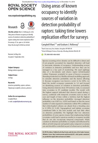 Using areas of known occupancy to identify sources of variation in detection probability of raptors: taking time lowers replication effort for surveys.
