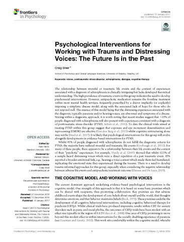 Steel, C. (2017) Psychological interventions for working with trauma and distressing voices: the future is in the past. Frontiers in Psychology, 7. 2035. ISSN 1664-1078 doi: 10.3389/fpsyg.2016.02035