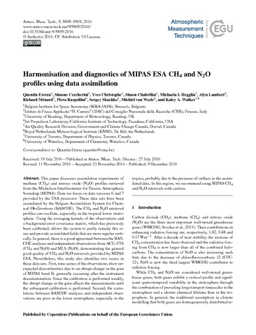Harmonisation and diagnostics of MIPAS ESA CH4 and N2O profiles using data assimilation.