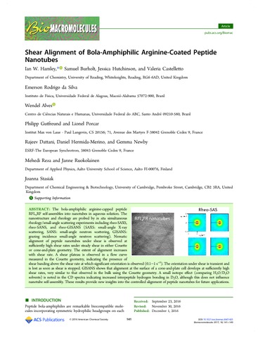 Hamley, I. W. ORCID: https://orcid.org/0000-0002-4549-0926, Burholt, S., Hutchinson, J., Castelletto, V., da Silva, E. R., Alves, W., Gutfreund, P., Porcar, L., Dattani, R., Hermida-Merino, D., Newby, G., Reza, M., Ruokolainen, J. and Stasiak, J.