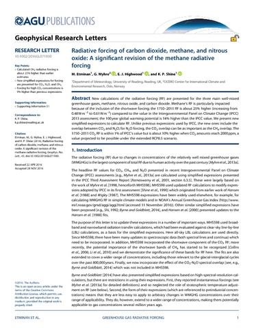 Etminan, M., Myhre, G., Highwood, E. J. and Shine, K. P. ORCID: https://orcid.org/0000-0003-2672-9978