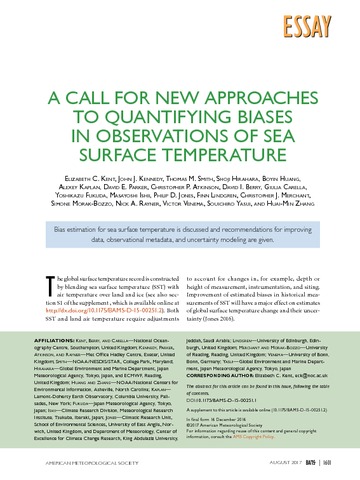 Kent, E. C., Kennedy, J. J., Smith, T. M., Hirahara, S., Huang, B., Kaplan, A., Parker, D. E., Atkinson, C. P., Berry, D. I., Carella, G., Fukuda, Y., Ishii, M., Jones, P. D., Lindgren, F., Merchant, C. J. ORCID: https://orcid.org/0000-0003-4687-9850, Morak-Bozzo, S., Rayner, N. A., Venema, V., Yasui, S. and Zhang, H.-M.