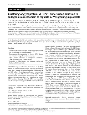Clustering of GPVI dimers upon adhesion to collagen as a mechanism to regulate GPVI signalling in platelets.