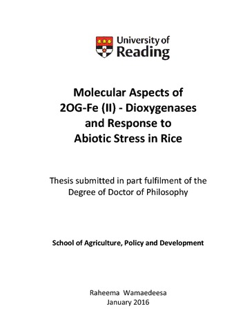 Wamaedeesa, R. (2016) Molecular aspects of 2OG-Fe (II) - dioxygenases and response to abiotic stress in rice. PhD thesis, University of Reading.