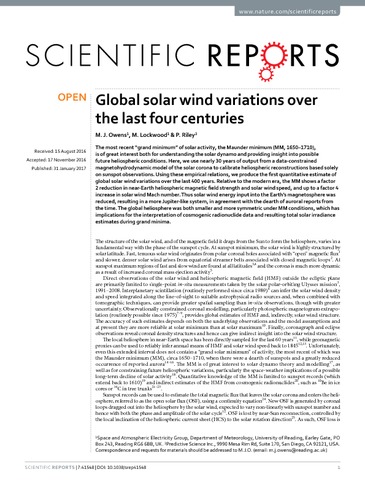 Global solar wind variations over the last four centuries.