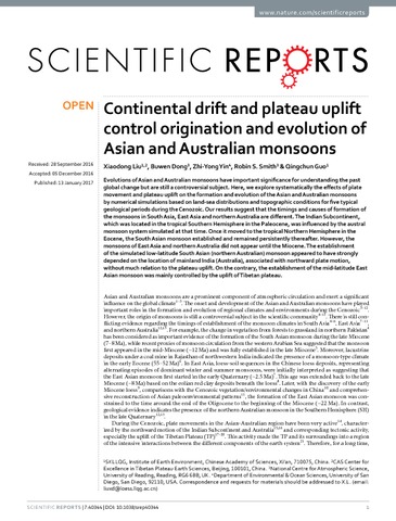 Continental drift and plateau uplift control origination and evolution of Asian and Australian monsoons.