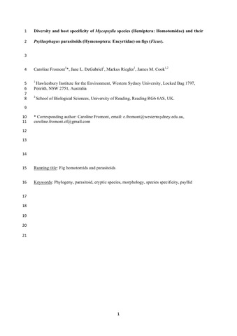 Fromont, C., DeGabriel, J. L., Riegler, M. and Cook, J. M. (2017) Diversity and specificity of sap-feeding herbivores and their parasitoids on Australian fig trees. Insect Conservation and Diversity, 10 (2). pp. 107-119. ISSN 1752-4598 doi: 10.1111/icad.12202