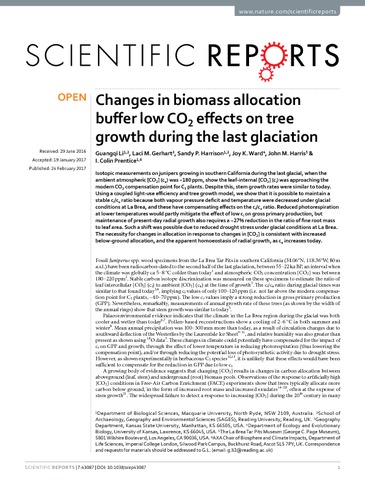 Changes in biomass allocation buffer low CO2 effects on tree growth during the last glaciation.