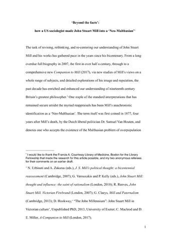 Stack, D. (2018) ‘Beyond the facts’: how a US sociologist made John Stuart Mill into a Neo-Malthusian. Historical Research, 91 (154). pp. 772-790. ISSN 1468-2281 doi: 10.1111/1468-2281.12246