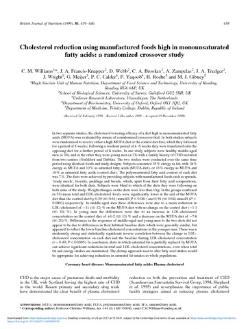 Cholesterol reduction using manufactured foods high in monounsaturated fatty acids: a randomized crossover study.