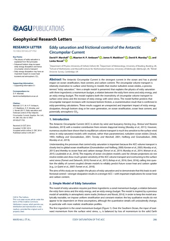 | Uncontrolled Keywords | Analytical modeling and laboratory experiments, Eddies and mesoscale processes, Currents, General circulation, Topographic/bathymetric interactions, ocean eddies, eddy saturation, bottom drag, Antarctic Circumpolar Current, ocean stratification, heat content |