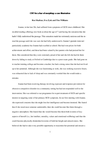 Zysk, E., Shafran, R., & Williams, T. (submitted). Treatment of the fear of morphing: a case study