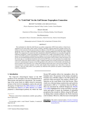 Uncontrolled Keywords | North Atlantic Ocean; Cold fronts; Extratropical cyclones; Boundary layer; Air-sea interaction |