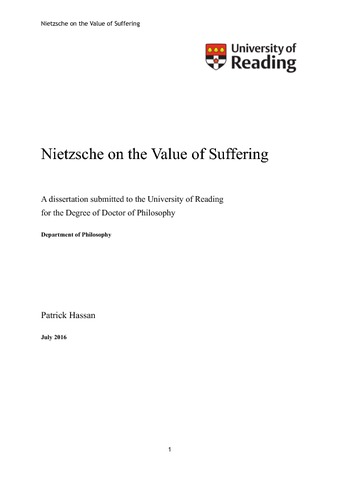 Hassan, P. (2016) Nietzsche on the value of suffering. PhD thesis, University of Reading.
