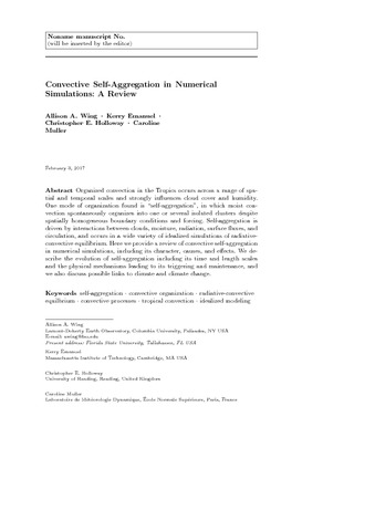 Convective self-aggregation in numerical simulations: a review.