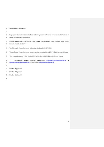 Cequier, E., Ionas, A.C., Covaci, A., Marcé, R.M., Becher, G., Thomsen, C., 2014. Occurrence of a Broad Range of Legacy and Emerging Flame Retardants in Indoor Environments in Norway. Environ. Sci. Technol. 48, 6827–6835. doi:10.1021/es500516u