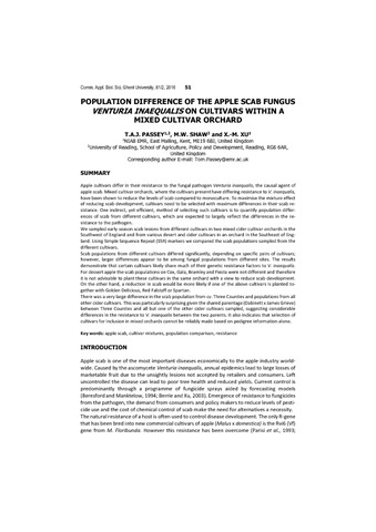 Apple cultivars differ in their resistance to the fungal pathogen Venturia inaequalis, the causal agent of apple scab. Mixed cultivar orchards, where the cultivars present have differing resistance to V. inaequalis, have been shown to reduce the levels of scab compared to monoculture. To maximise the mixture effect on reducing scab development, cultivars need to be selected with maximum differences in their scab resistance. One indirect, yet efficient, method of selecting such cultivars is to quantify population differences of scab from different cultivars, which are expected to largely reflect the differences in the resistance to the pathogen. We sampled early season scab lesions from different cultivars in two mixed cider cultivar orchards in the Southwest of England and from various desert and cider cultivars in an orchard in the Southeast of England. Using Simple Sequence Repeat (SSR) markers we compared the scab populations sampled from the different cultivars. Scab populations from different cultivars differed significantly, depend ng on specific pairs of cultivars; however, larger differences appear to be among fungal populations from different sites. The results demonstrate that certain cultivars likely share much of their genetic resistance factors to V. inaequalis. For dessert apple the scab populations on Cox, Gala, Bramley and Fiesta were not different and therefore it is not advisable to plant these cultivars in the same orchard with a view to reducing scab development. On the other hand, a reduction in scab would be more likely if one of the above cultivars were planted together with Golden Delicious, Red Falstaff or Spartan. There was a very large difference in the scab population from cv. Three Counties and populations from all other cider cultivars. This was particularly surprising given the shared parentage (Dabinett x James Greave) between Three Counties and all but one of the other cider cultivars sampled, suggesting considerable differences in the resistance to V. inaequalis between the two parents. It also indicates that selection of cultivars for inclusion in mixed orchards cannot be reliably made based on pedigree information alone.