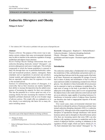 Darbre, P. (2017) Endocrine disruptors and obesity. Current Obesity Reports, 6 (1). pp. 18-27. ISSN 2162-4968 doi: 10.1007/s13679-017-0240-4