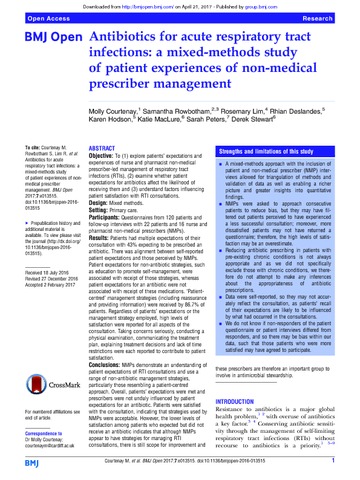 Antibiotics for acute respiratory tract infections: a mixed methods study of patient experiences of non-medical prescriber management.