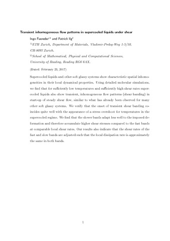 Fuereder, I. and Ilg, P. orcid id iconORCID: https://orcid.org/0000-0002-7518-5543 (2017) Transient inhomogeneous flow patterns in supercooled liquids under shear. Soft Matter, 13 (11). pp. 2192-2200. ISSN 1744-683X doi: 10.1039/C7SM00178A