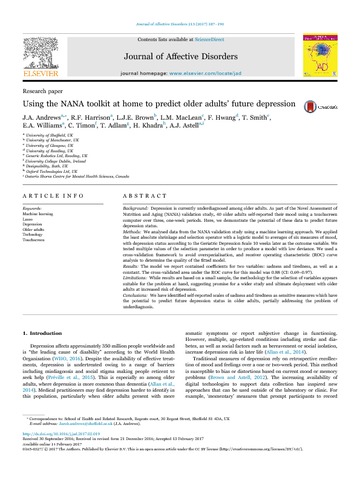 Using the NANA toolkit at home to predict older adults' future depression