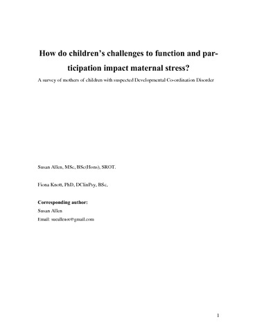 How do children’s challenges to function and participation impact maternal stress? A survey of mothers of children with suspected developmental co-ordination disorder