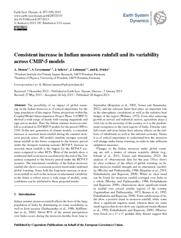 Consistent increase in Indian monsoon rainfall and its variability across CMIP-5 models.