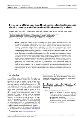Development of large scale inland flood scenarios for disaster response planning based on spatial/temporal conditional probability analysis.