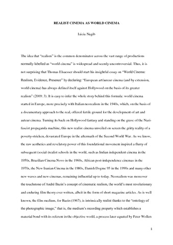 | Uncontrolled Keywords | Realist cinema; world cinema; film theory |