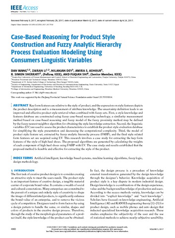 Case-based reasoning for product style construction and fuzzy analytic hierarchy process evaluation modeling using consumers linguistic variables.