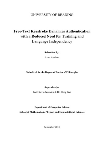 Alsultan, A. F. A. (2017) Free-text keystroke dynamics authentication with a reduced need for training and language independency. PhD thesis, University of Reading.