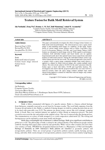 | Uncontrolled Keywords | Batik Batik motif retrieval system Content based image retrieval Feature fusion Motif |